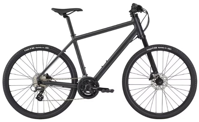 Engineered especially for urban cycling, this bad boy needs no suspension system to perform like a champ. The ETB Byway 650b x 40mm tires, alloy seat post, Cannondale Urban saddle, and pedals are all coordinated for the most responsive ride yet. Would you expect anything less than Shimano shifters, hydraulic disc brakes, rear cogs, and derailleurs?