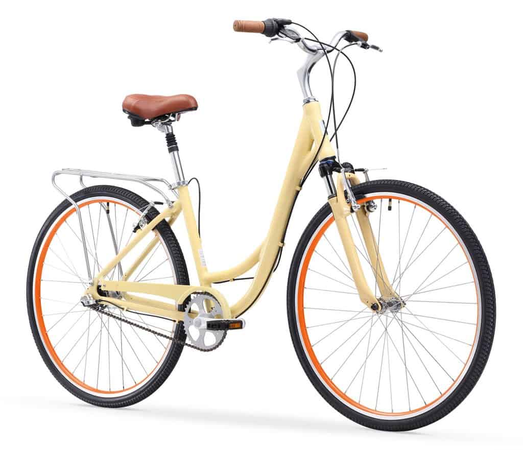 Body Ease is one of the most comfortable bikes you can find in the already comfortable lineup of sixthreezero. It’s stable and balanced, and riding it is straightforward. For around $500, you get a low step-through frame, dual-spring wide saddle, and a terrific adjustable suspension fork.